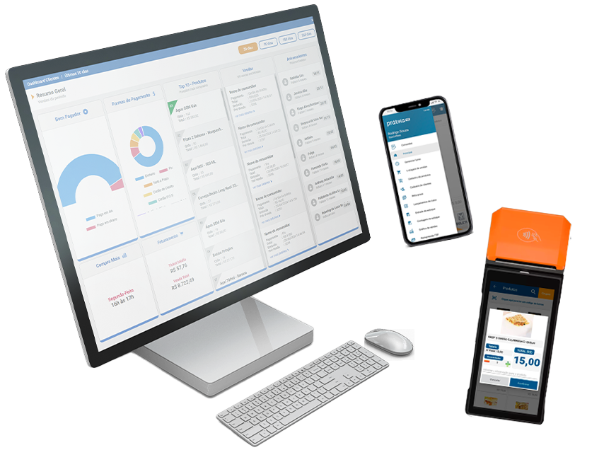 pelo seu computador, celular, Tablet, maquina de Cartão